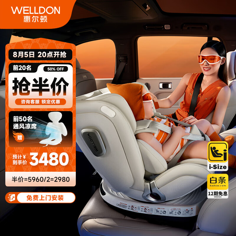 惠尔顿智转2儿童座椅0-4-7岁i-Size认证舒适头等舱通风散热360旋转价格:3479.00元!