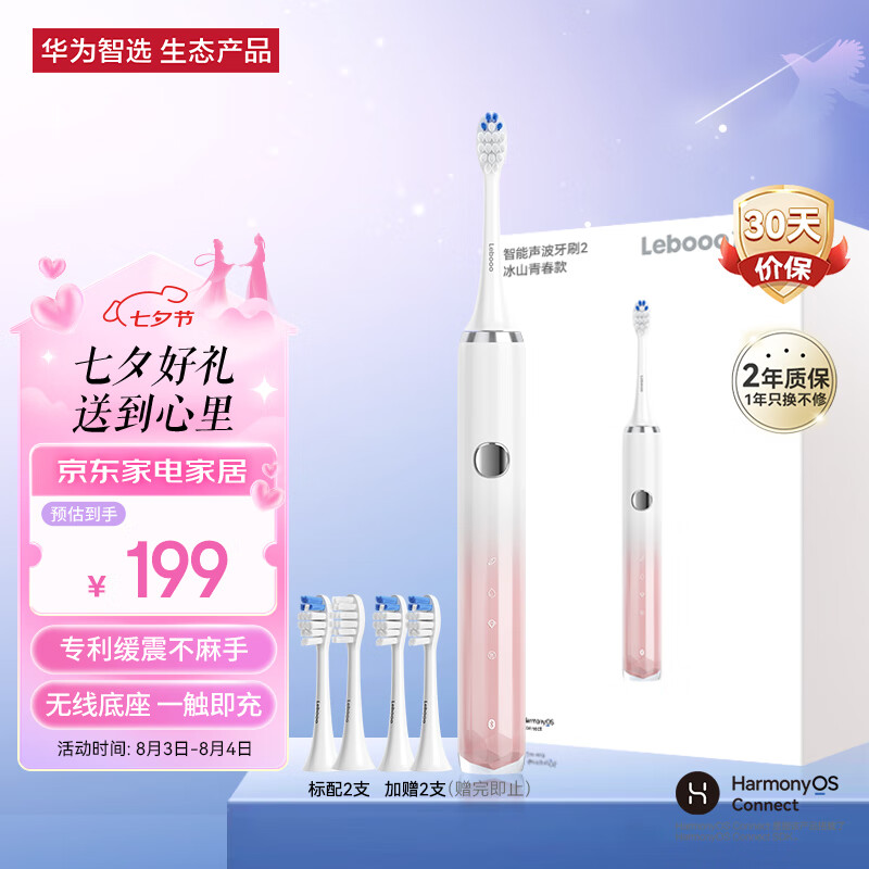 华为智选力博得电动牙刷 智能声波牙刷2 冰山青春款 送女友牙刷七夕情人节礼物 珊瑚粉(支持鸿蒙智联)价格:199.00元!