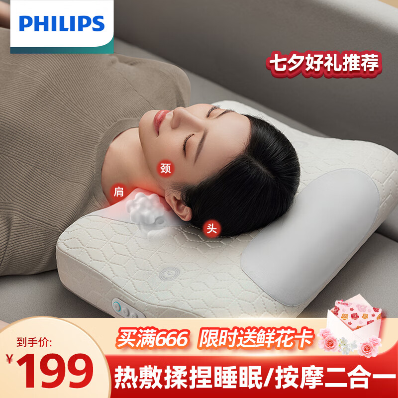 飞利浦(PHILIPS)颈椎按摩仪器按摩枕头颈部按摩睡眠枕 家用肩颈脖子热敷揉按腰部颈椎按摩器情人节七夕礼物3502N价格:247.00元!
