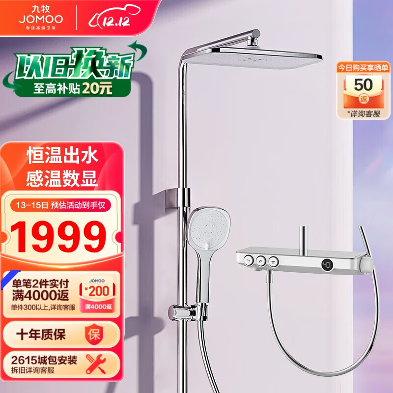 九牧(JOMOO)数显恒温淋浴花洒套装置物架增压除垢淋浴器 26177-624/KB-1价格:2399.00元!