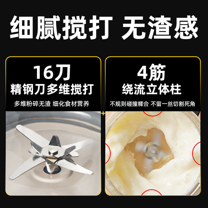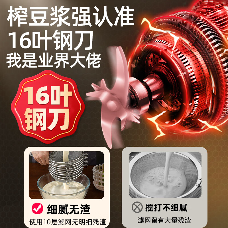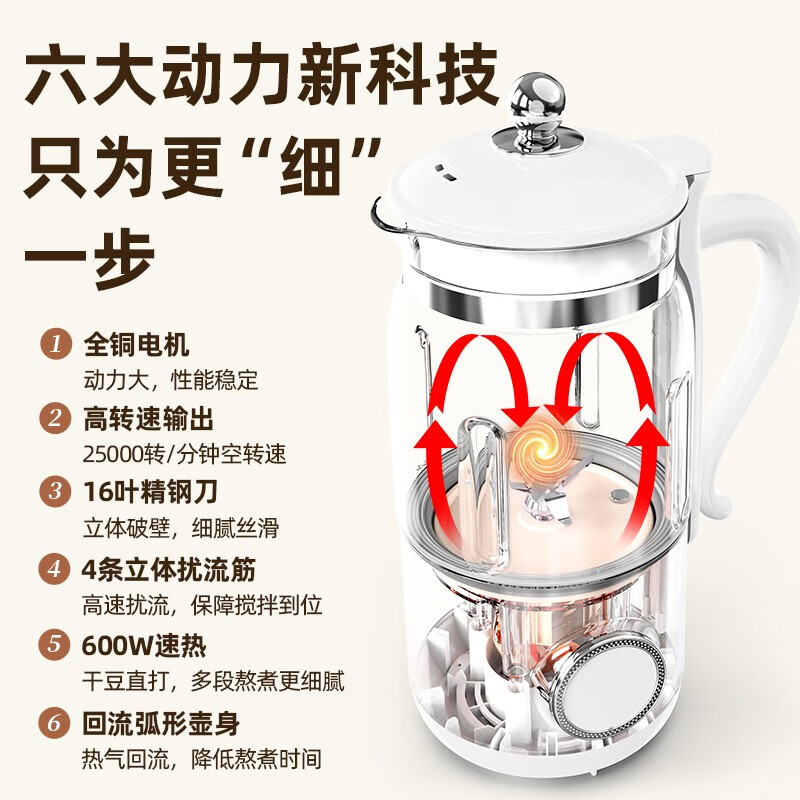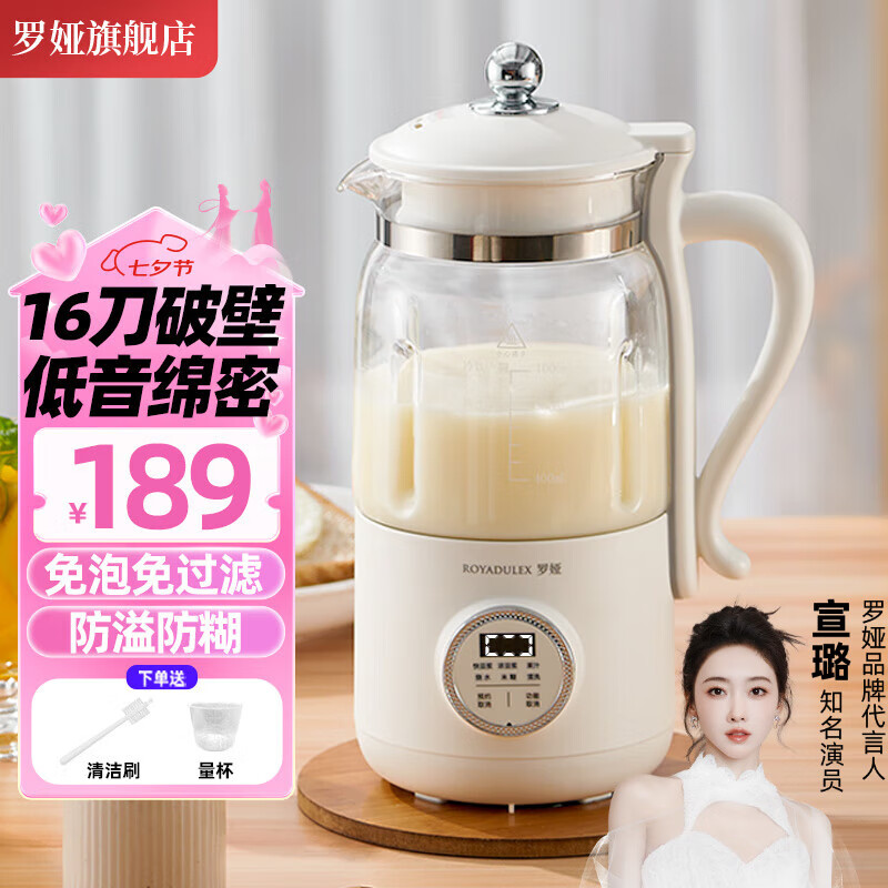 罗娅18叶刀豆浆机破壁机家用小型迷你1-2人 全自动免煮免过滤 降噪静低音 打米糊辅食料理机1000ml 16刀奶白色价格:189.00元!