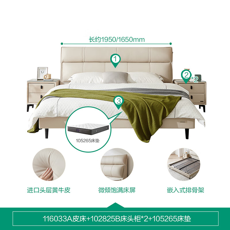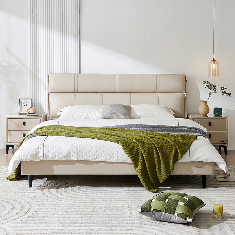 全友家居 头层牛皮床真皮床现代简约卧室高脚双人床1.5米x2米116033价格:5427.14元!