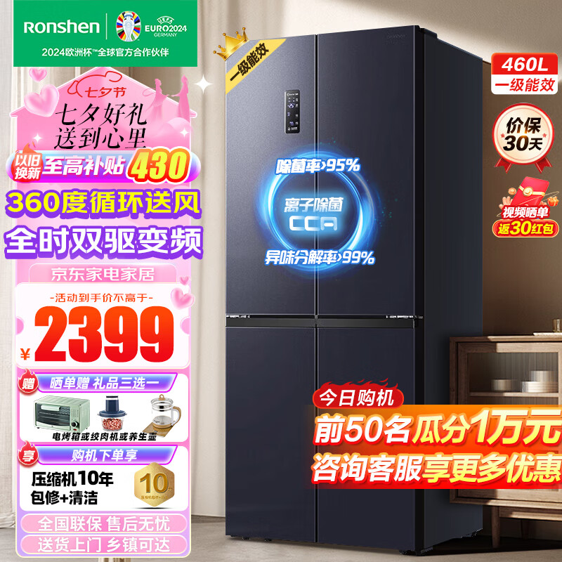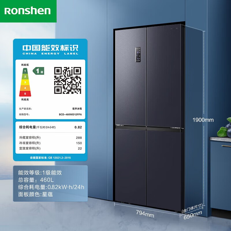 容声(Ronshen)冰箱四开门超薄嵌入式460升十字对开门变频风冷无霜家用电冰箱一级能效BCD-460WD12FPA价格:2899.00元!