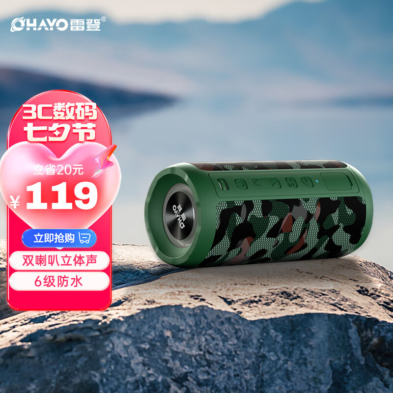 雷登(OHAYO)X10蓝牙音箱双喇叭3d环绕大功率音量超重低音炮户外防水便携式随身家用小钢炮迷你蓝牙音响价格:132.10元!