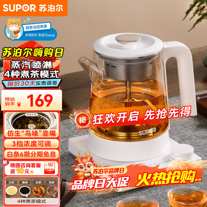 苏泊尔(SUPOR)养生壶 煮茶器大容量蒸汽喷淋式煮茶壶烧水壶 电热水壶花茶壶蒸茶器 SW-10C12【茶汤分离】价格:169.00元!