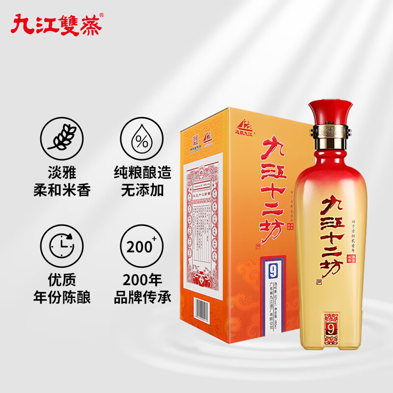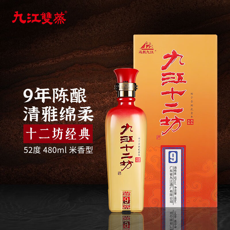 九江双蒸 米香型白酒 52度9年陈十二坊系列480ml 送礼白酒礼盒装价格:158.00元!
