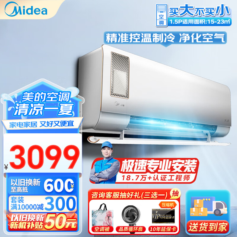美的(Midea)空调挂机 新一级能效变频冷暖 节能省电 新风空调 智能新风系统 静新风 KFR-35GW/N8XF1-1价格:3099.00元!