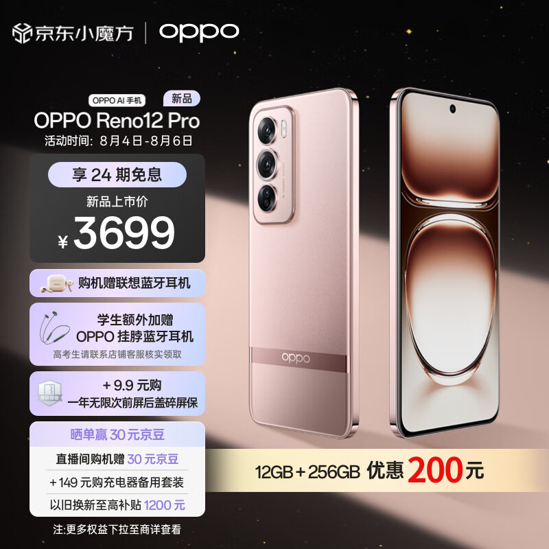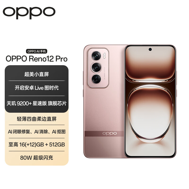 OPPO Reno12 Pro 超美小直屏 安卓Live图 天玑旗舰芯 16GB+256GB 香槟金 新款智能游戏 AI拍照 5G手机价格:3699.00元!