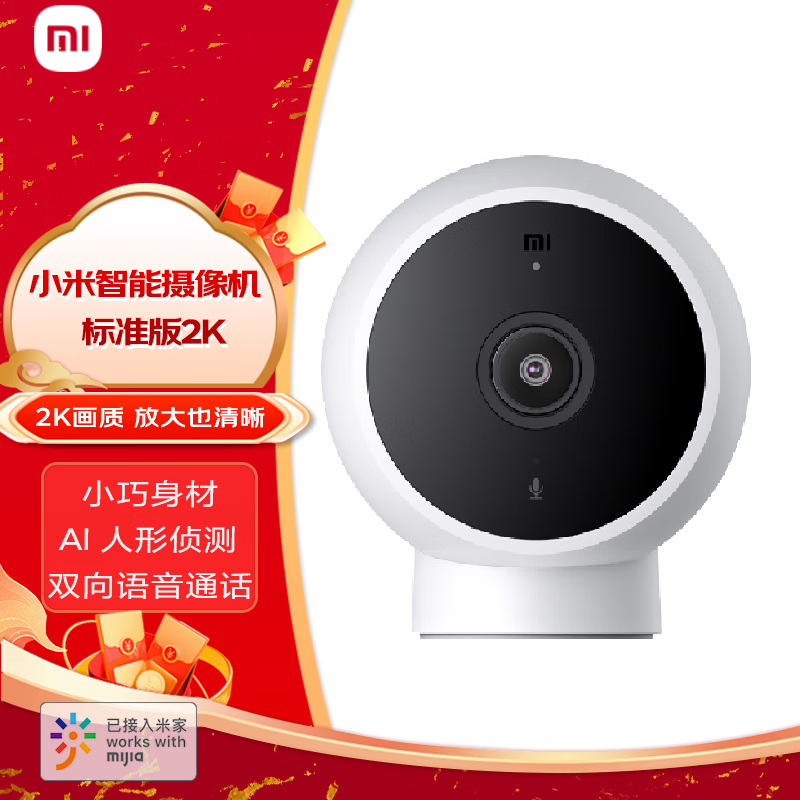 小米智能摄像机 标准版2K 家用监控摄像头 手机查看 看家 AI人形侦测 磁吸底座价格:129.00元!