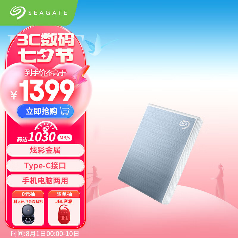 希捷(SEAGATE)移动固态硬盘2TB PSSD NVMe 小铭 type-C USB3.2 蓝色 迷你小型 手机直连 数据恢复服务价格:1399.00元!