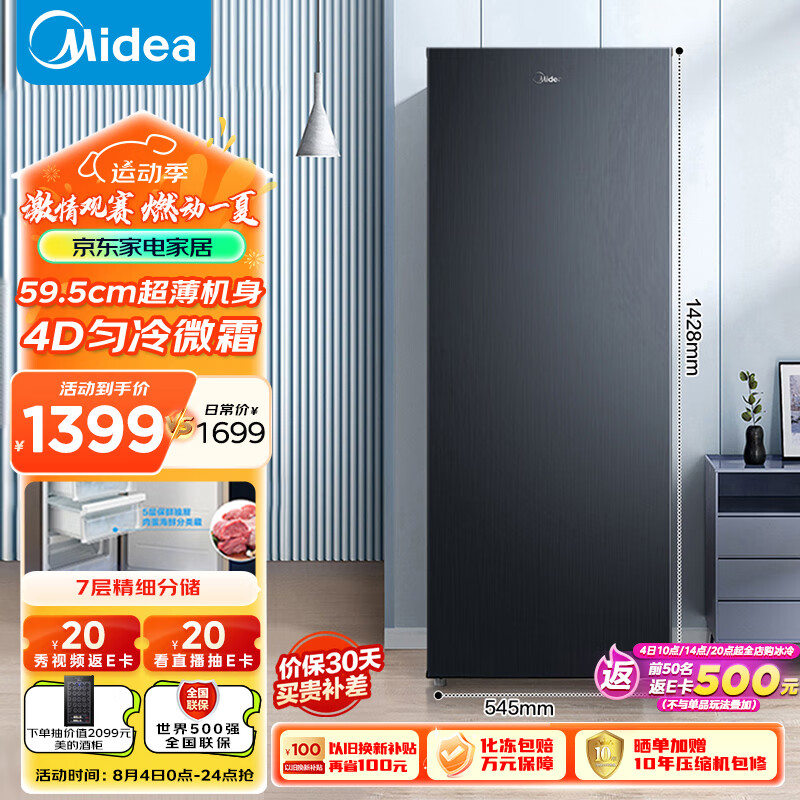 美的(Midea)200升 节能低霜家用囤货立式冰柜 冷藏冷冻转换抽屉式冰柜 小型全冷冻冰箱冷柜 BD/BC-200UM价格:1399.00元!