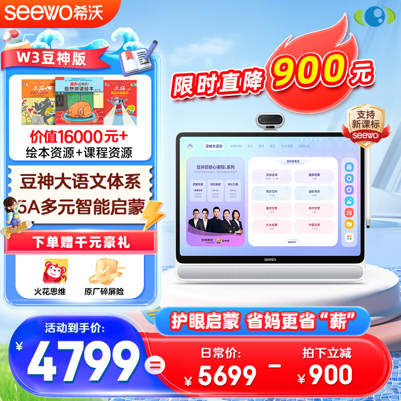 希沃学习机W3豆神限量款大语文类纸护眼大屏学生平板电脑小学到高中同步英语学习早教机8G+256G皓月白价格:4799.00元!