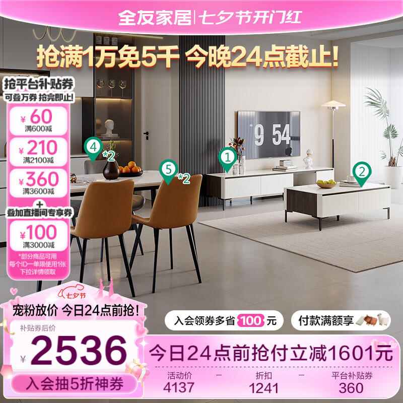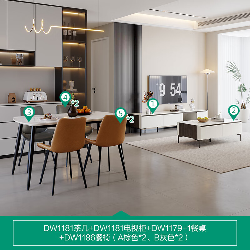 全友家居 时尚拼色客餐厅7件套装DW1181茶几电视柜一桌四椅组合家具价格:4137.14元!