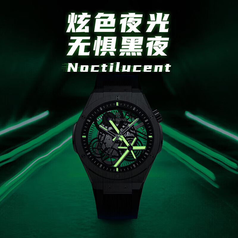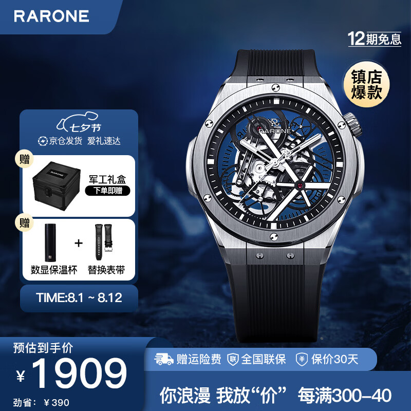 雷诺(RARONE)双子星·X时轮全景镂空机械表夜光国表品牌男士腕表价格:2189.00元!