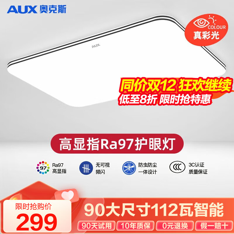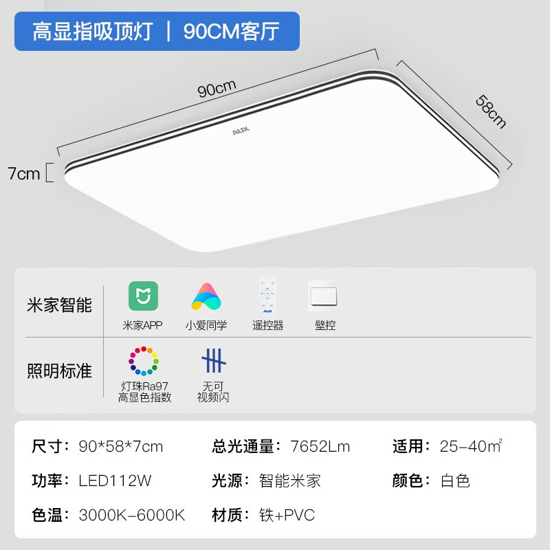 奥克斯(AUX)LED吸顶灯客厅大灯具套餐三室两厅餐厅卧室书房健康照明阳台灯 健康护眼112瓦智能大客厅适35平价格:332.00元!