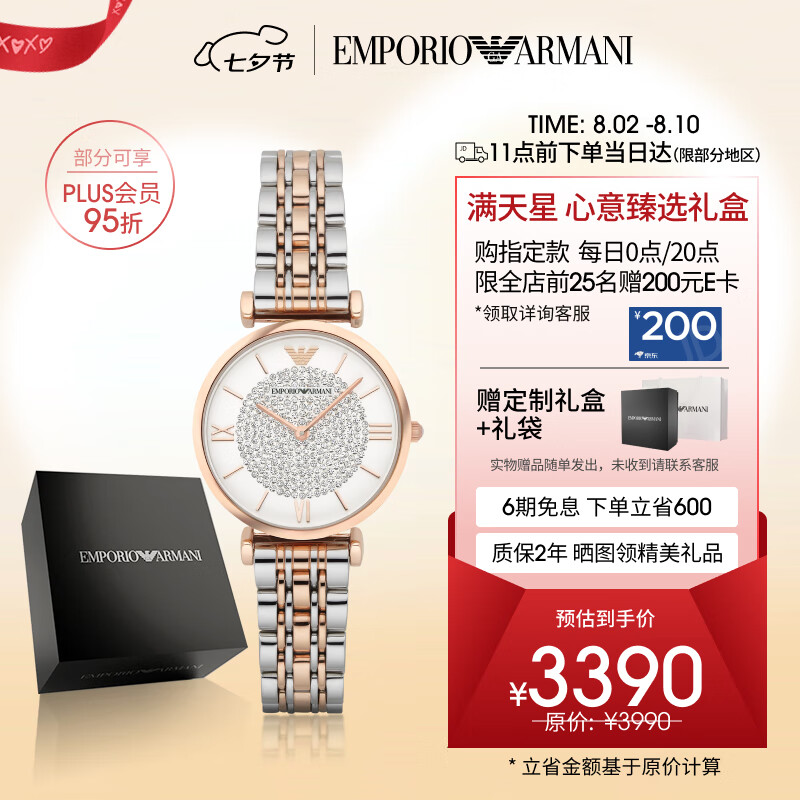 安普里奥·阿玛尼(Emporio Armani)手表女士 AR1926满天星系列镶钻时尚石英表七夕情人节礼物送女友价格:3690.00元!