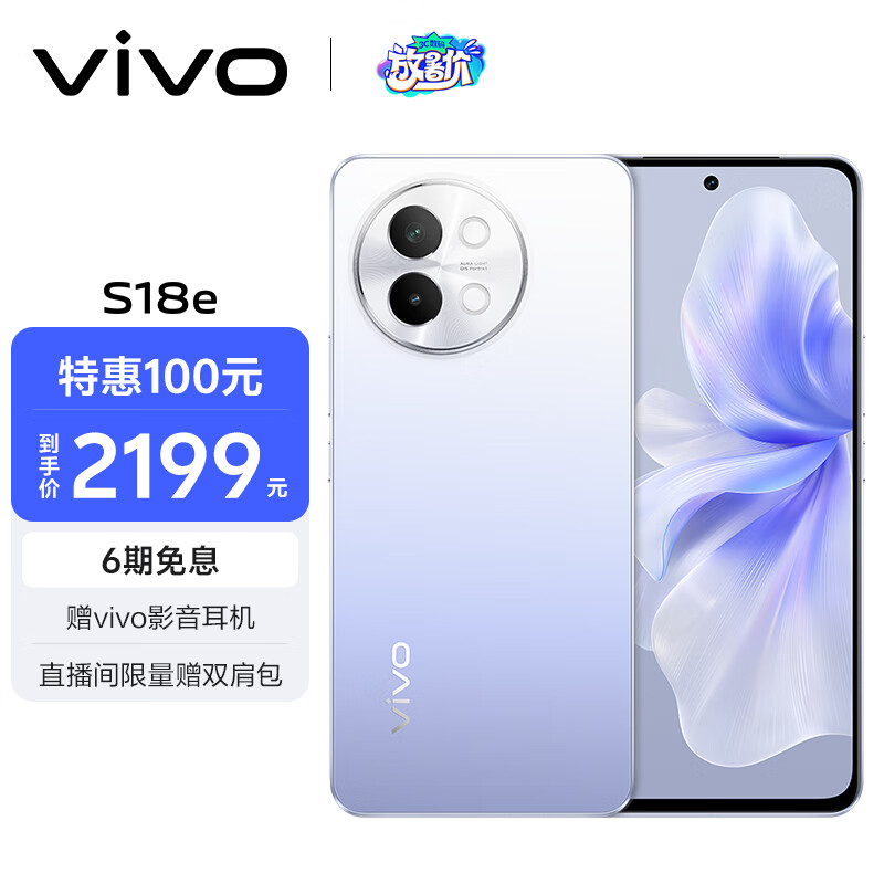 vivo S18e 12GB+512GB 霞光紫 7.69mm超薄直屏 80W 4800mAh超长续航 全新人像双补光环 5G 拍照 手机价格:2299.00元!