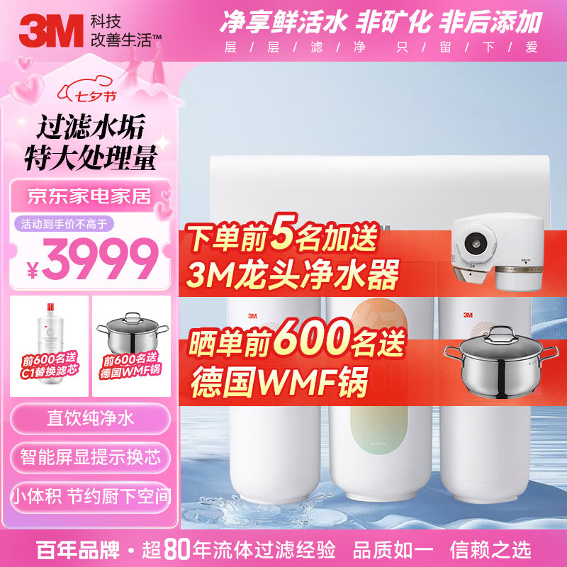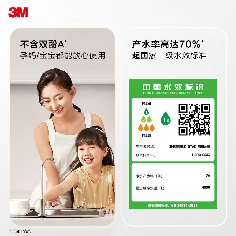 3M净水器家用净水机直饮RO反渗透厨下过滤器800G大通量2L/min家用纯水机HFRO-S823价格:4599.00元!