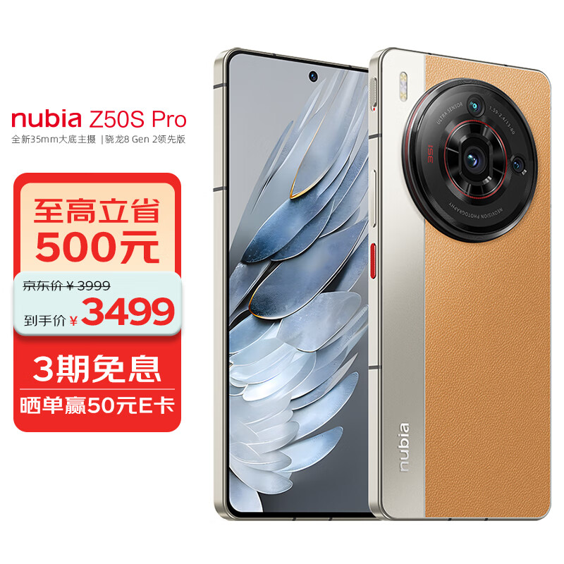nubia 努比亚Z50S Pro 12GB+1T卡其 第二代骁龙8版 35mm高定大底主摄 5100mAh 1.5K直屏 5G手机游戏拍照价格:3499.00元!