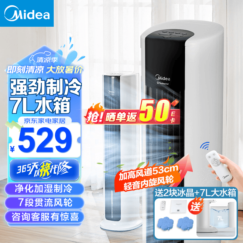 美的(Midea)【空调伴侣】空调扇家用冷风扇制冷宽域出风水风扇立式单冷风机遥控无叶定时冷气塔扇净化加湿降温 【800ml/h大加湿量】AAC12AR价格:749.00元!