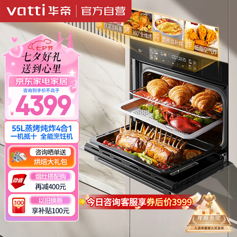 华帝(VATTI)蒸烤箱一体机嵌入式烤箱营养师 V5SE 蒸烤一体机大热风彩屏操控搪瓷内胆APP掌控 i23019价格:4399.00元!