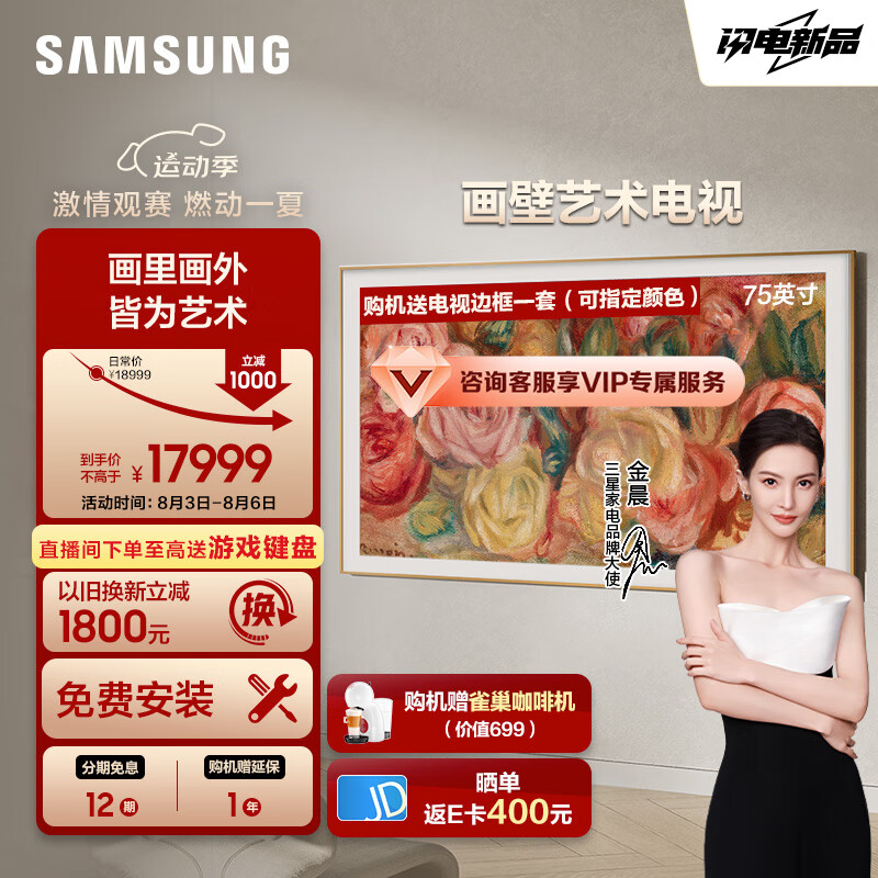 三星(SAMSUNG)75LS03D 75英寸 frame画壁艺术电视 AI电视 120Hz QLED量子点 QA75LS03DAJXXZ价格:17999.00元!