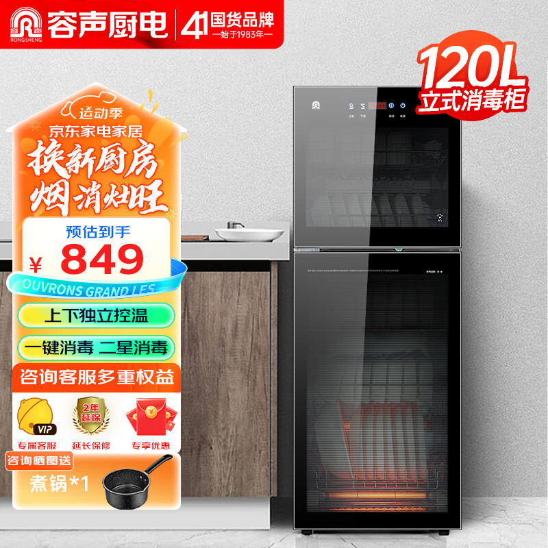 容声(RONGSHENG)消毒柜家用 立式消毒碗柜 商用 餐具茶杯碗筷厨房臭氧消毒柜120L双门大容量178-RQ230(A)价格:849.00元!