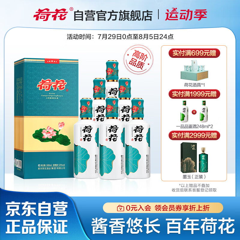 荷花上品荷花 酱香型白酒53度500ml*6瓶 整箱装 纯粮酿造 大曲坤沙价格:3162.00元!