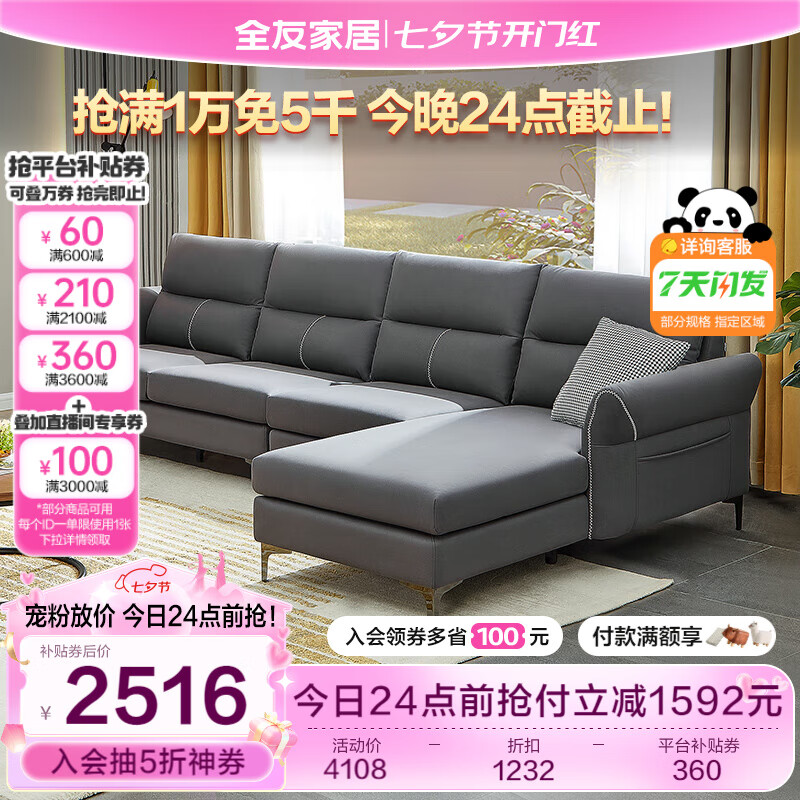 全友家居 现代简约功能科技布艺可拆洗储物转角贵妃沙发客厅102679价格:4108.57元!