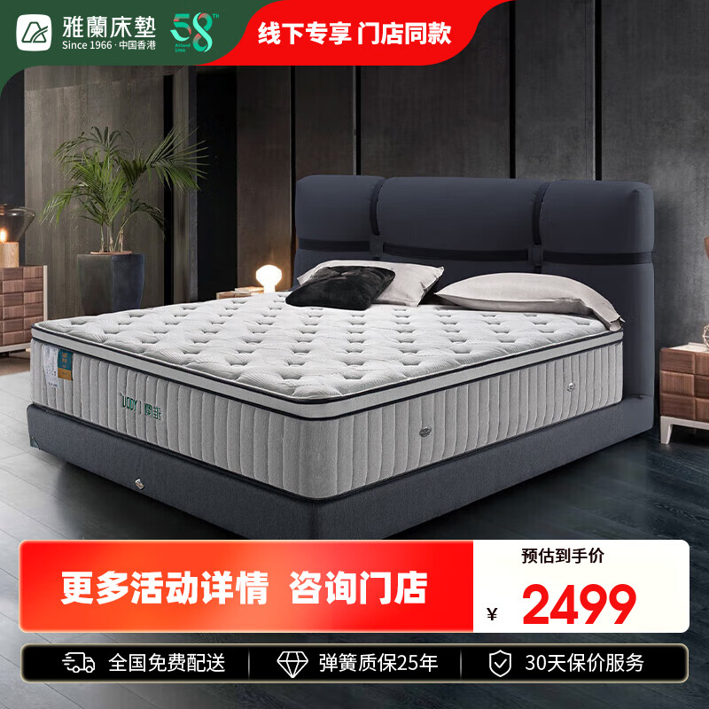 雅兰乳胶床垫偏硬家用黄麻舒脊独立弹簧棕垫 有度旗舰版 1.8*2米 超体价格:4499.00元!