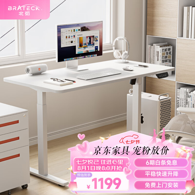 Brateck电动升降电脑桌 北弧站立办公升降书桌 工作升降台 K2白1.5米价格:1359.00元!