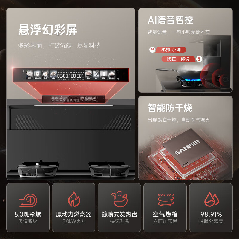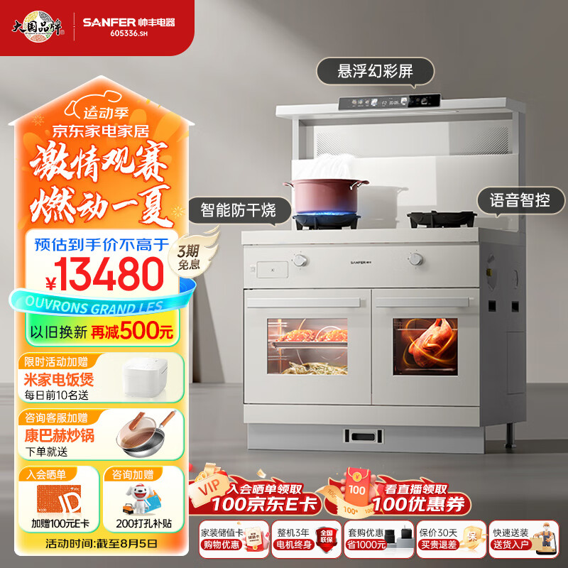 帅丰集成灶一体式 蒸烤箱一体机 家用蒸烤独立变频集成灶 白色 TJ3-8B 智能语音 5.0kW燃气灶 天然气价格:13480.00元!