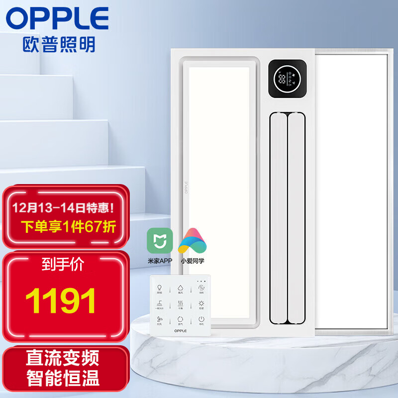欧普照明(OPPLE)大功率风暖浴霸吊顶米家智控直流变频JDSF161Y-BP价格:1629.00元!