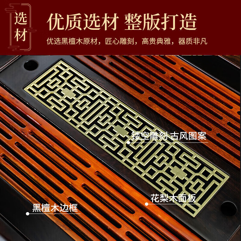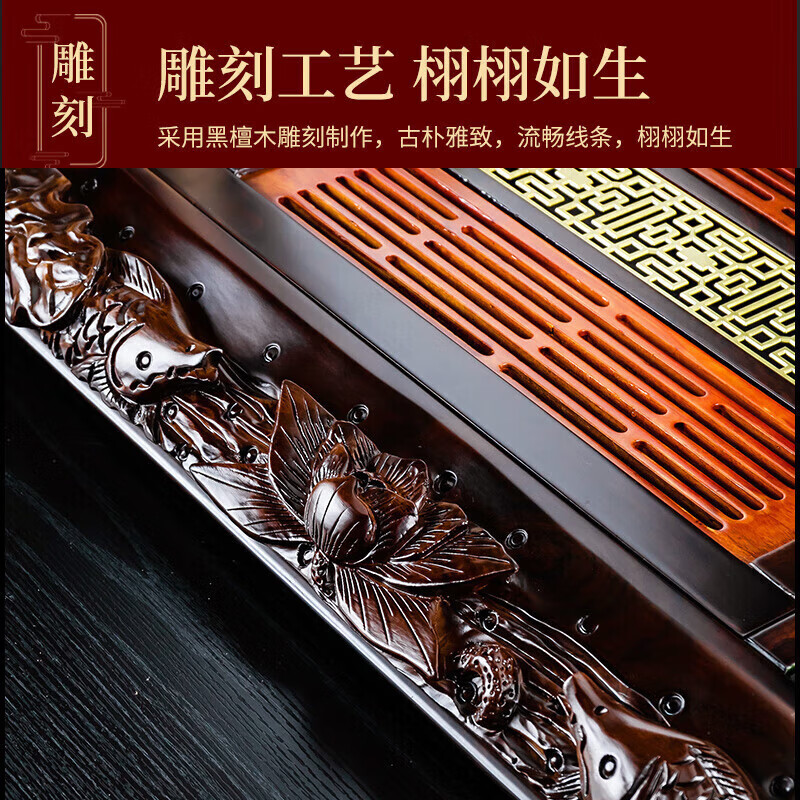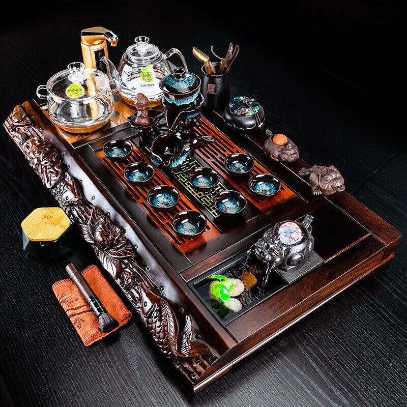 琦轩源黑檀木茶盘茶具套装全自动一体家用办公室会客高档轻奢实木泡茶台价格:4395.00元!
