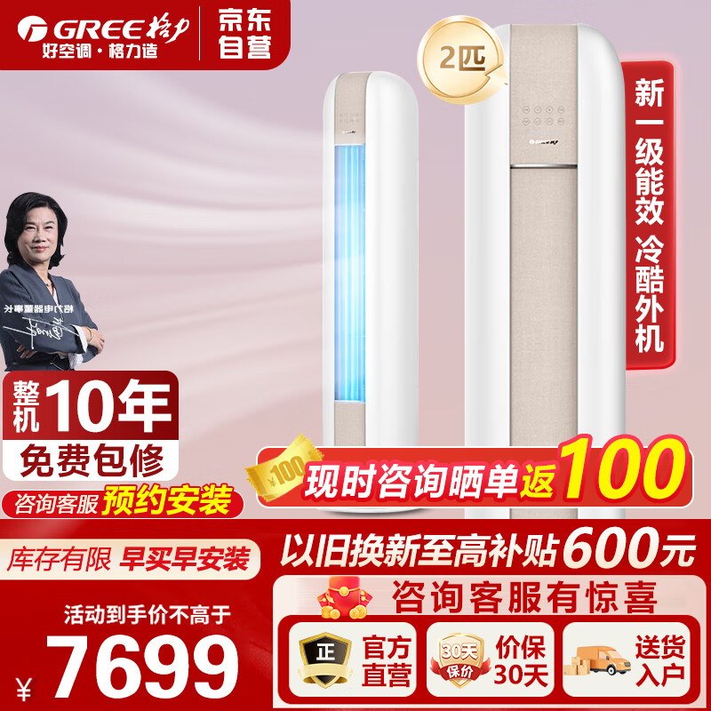 格力(GREE)空调 2匹时光绘 新一级能效变频冷暖 高温自清洁 智能化霜客厅圆柱式空调柜机 智选(1)价格:7669.00元!