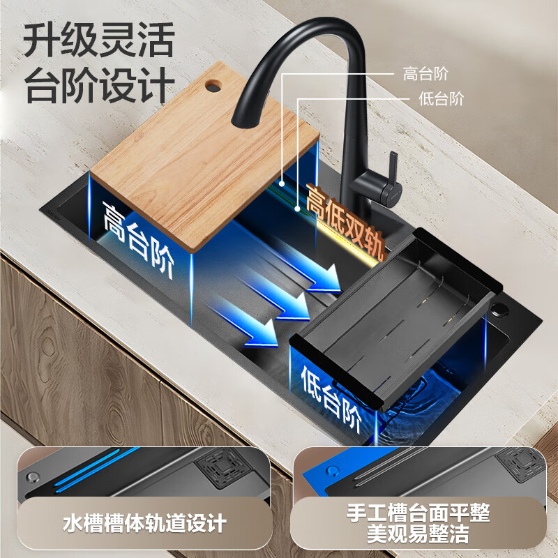 箭牌(ARROW)304不锈钢水槽手工纳米轨道大单槽厨房洗菜盆洗菜池洗碗一体盆 70黑手工纳米轨道槽-含抽拉龙头价格:1739.00元!