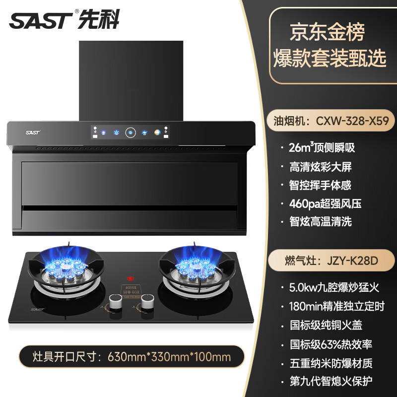 先科(SAST)油烟机顶侧双吸抽油烟机烟灶套装家用吸油烟机厨房大吸力油烟机燃气灶抽烟机灶具套装 液化气/【烟灶套装】搭26立方爆吸+5.0KW猛火价格:1499.00元!