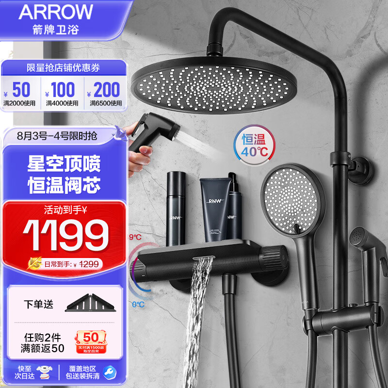 箭牌(ARROW)恒温花洒套装冷热家用卫生间挂墙式淋浴增压喷头套装 星空顶恒温花洒34120HMB价格:1410.00元!