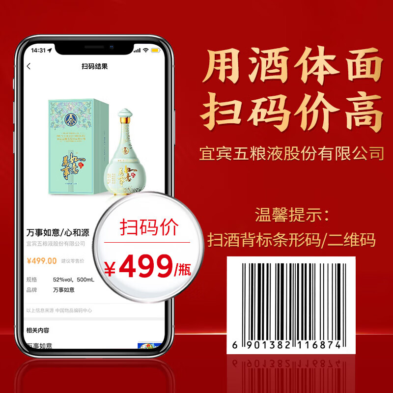 五粮液股份 万事如意心和源升级款 纯粮食白酒 52度500ml*6瓶 中秋送礼价格:2649.00元!