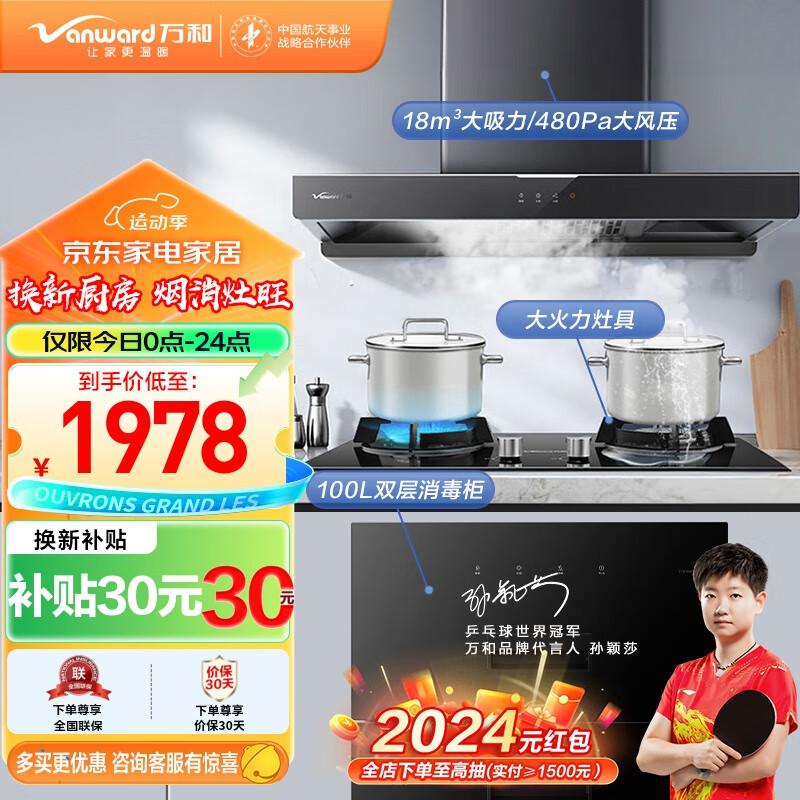 万和(Vanward)烟灶消三件套 欧式触屏 油烟机燃气灶具消毒柜厨房多件套装 X518A+B3L20+ZTD100Q-D5(液化气)价格:1978.00元!