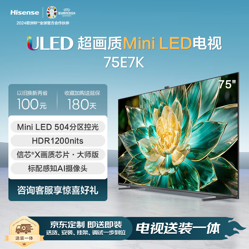 海信电视75E7K 【送装一体版】 75英寸ULED X Mini LED AI摄像头超感知 液晶智能平板电视机价格:6398.00元!