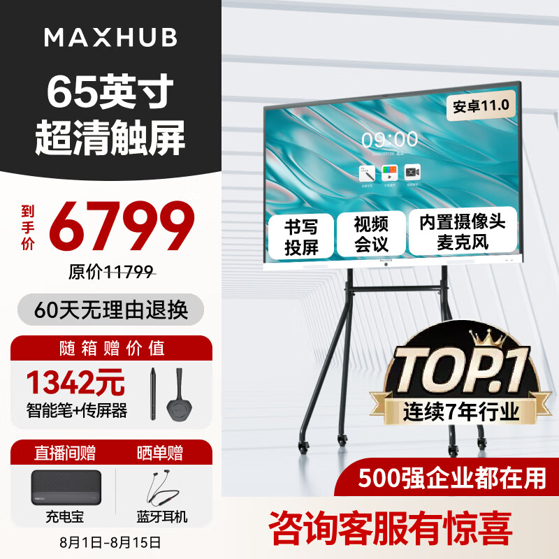 maxhub新锐65英寸视频会议平板一体机 会议大屏一体机触摸屏 高清显示器电子白板黑板教学会议平板书写投屏价格:6739.00元!