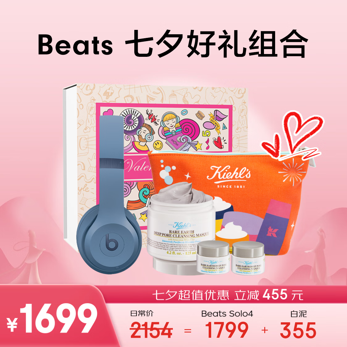 beats 七夕限定礼盒 Beats Solo 4 无线头戴式蓝牙耳机 情人节生日礼物送女友 岩青色价格:1699.00元!