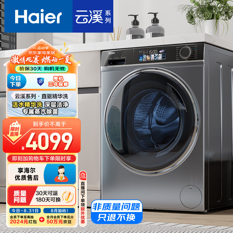 海尔(Haier)滚筒洗衣机全自动 云溪82S 洗烘一体机【直驱精华洗EG100HMATE82S】家用10公斤大容量 以旧换新价格:4099.00元!