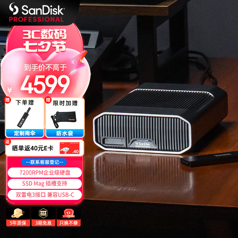 闪迪大师极客 致捷 8TB 企业级桌面移动硬盘 机械硬盘雷电3兼容USBType-C 3.5英寸大容量读写速度250MB/S价格:4360.40元!