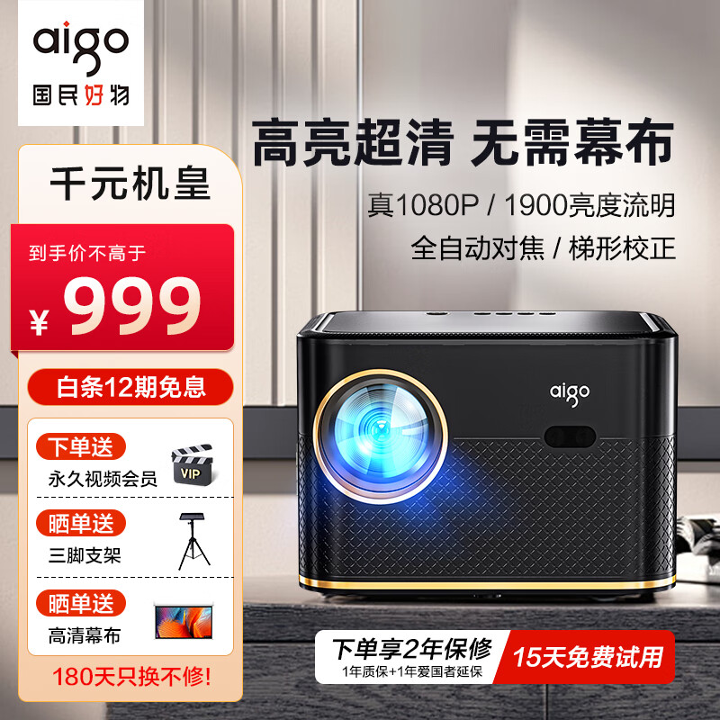 爱国者H126 投影仪家用高清办公投影机卧室投屏便携智能家庭影院一体机(真1080P 自动对焦 全自动校正)价格:999.00元!