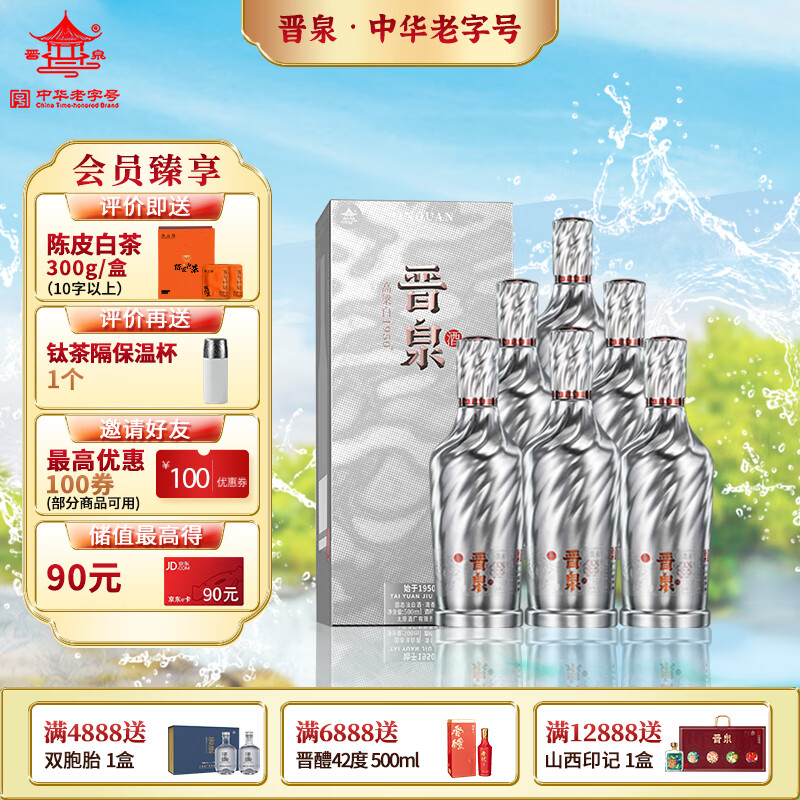 晋泉1950+ 高粱白酒 清香型白酒 53度 500ml*6瓶 整箱装价格:1988.00元!