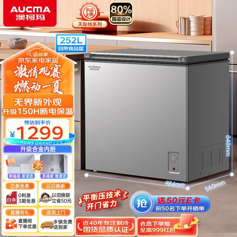 澳柯玛(AUCMA)252升商用家用冰柜冷藏柜冷冻柜 单温低霜小冷柜 一级能效 天际线系列 BC/BD-252HSNE价格:1299.00元!