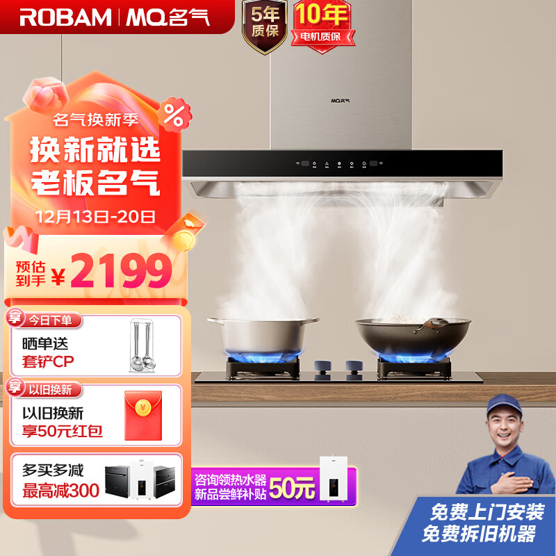 名气(MQ)老板抽油烟机烟灶套装家用顶吸油烟机21大吸力抽油烟机燃气灶具套装天然气6515A+A6812B价格:2199.00元!