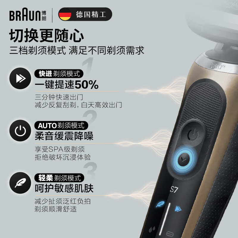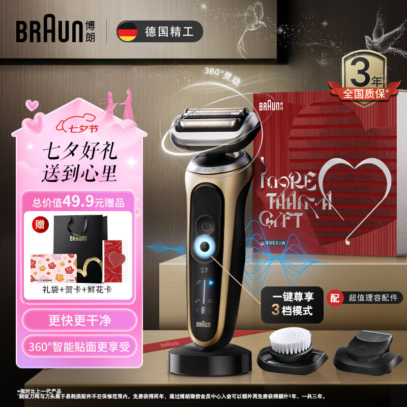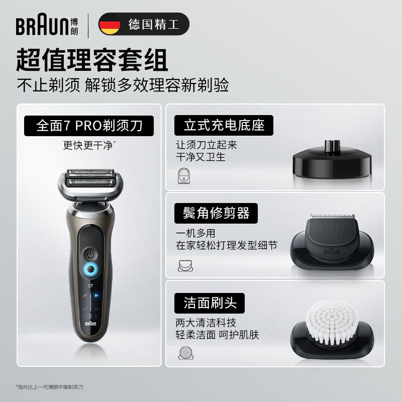 博朗(BRAUN)雷霆7系Pro多功能钛金色礼盒款电动剃须刀整机德国进口往复式刮胡刀男士七夕情人节礼物价格:1049.00元!